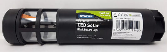 6 x Status Garden Solar Black Bollard Lights, Outdoor LED Garden Lights - Battery Lasts 10 Hours, Rust, Scratch & All-Weather Resistant, with Replaceable Rechargeable Battery [Energy Class A+++]