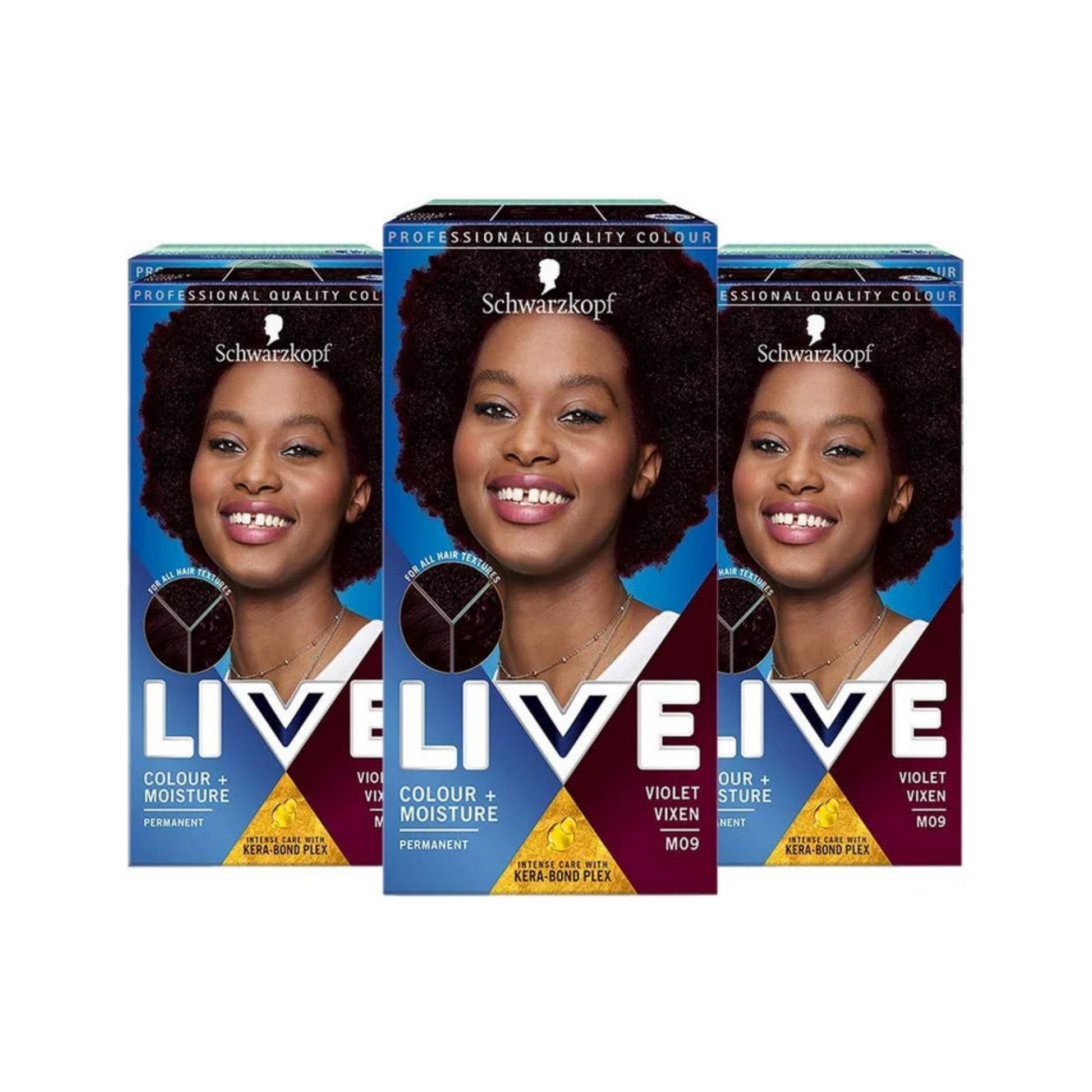 3 Pack Schwarzkopf Live Colour + Moisture Dark Purple Hair Dye - M09 Violet Vixen