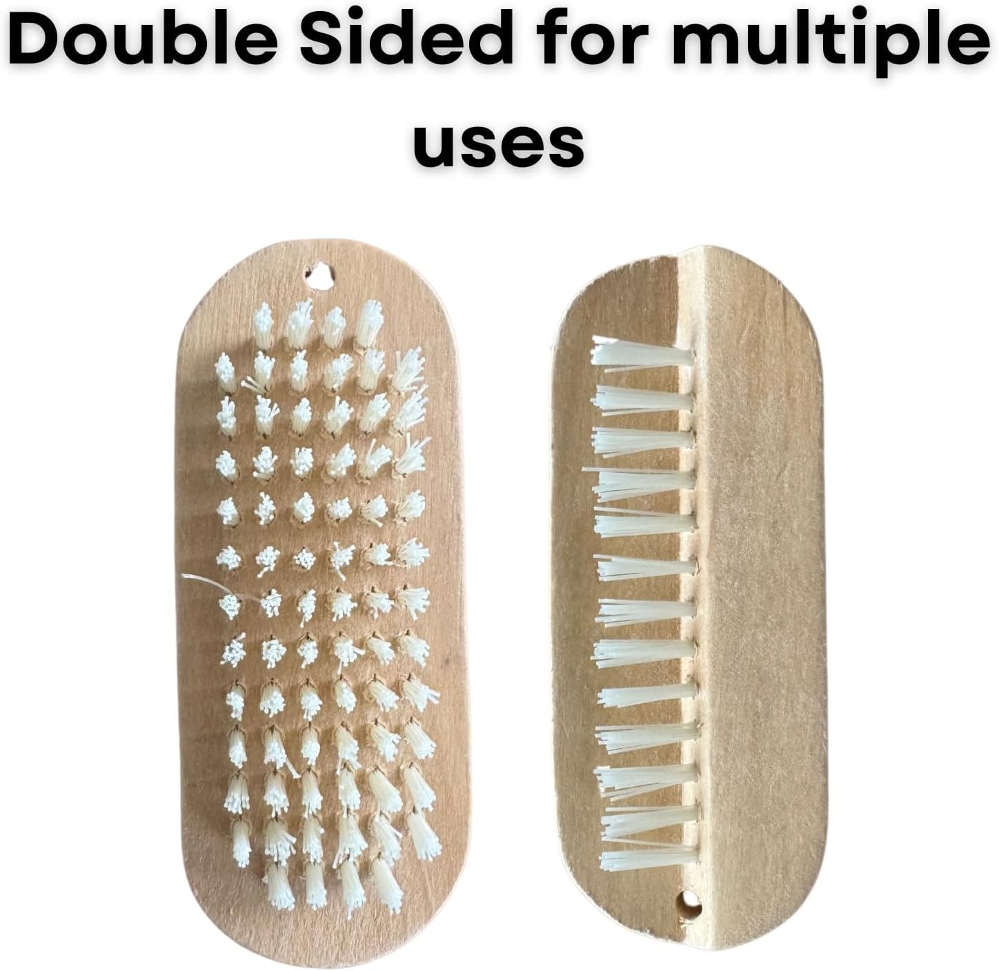 4 x Wooden Nail Brushes, Hygienic Double Sided Hand And Cleaning Brush, Scrubbing To Clean Under Dirt Grime Grease, Firm Strong Bristles, For Use On Fingernails Toenails