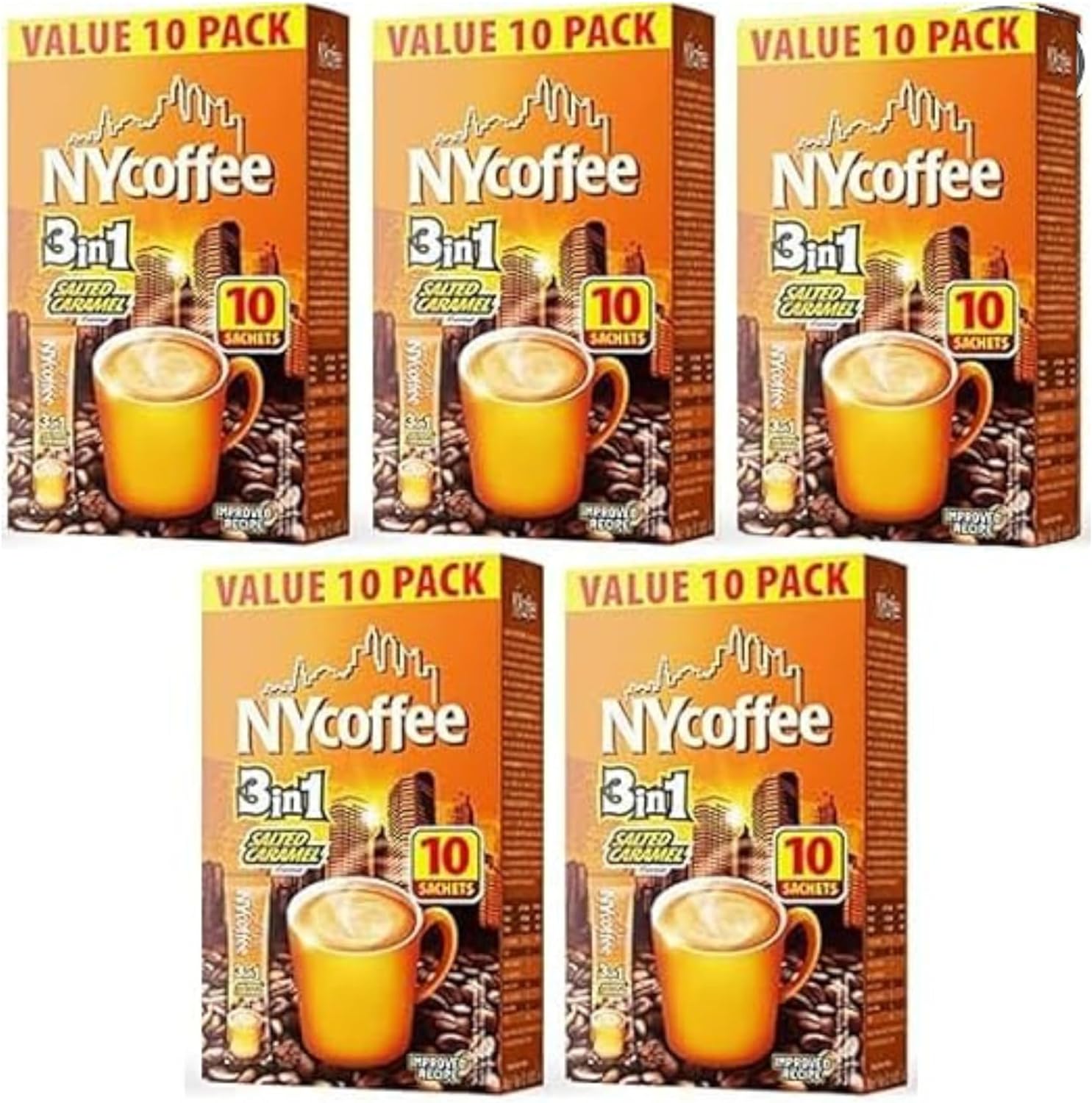 50 x NY Coffee 3 in 1 Sachets Salted Caramel Flavour Individual Sticks - 5 Boxes x 10 Instant Sachets