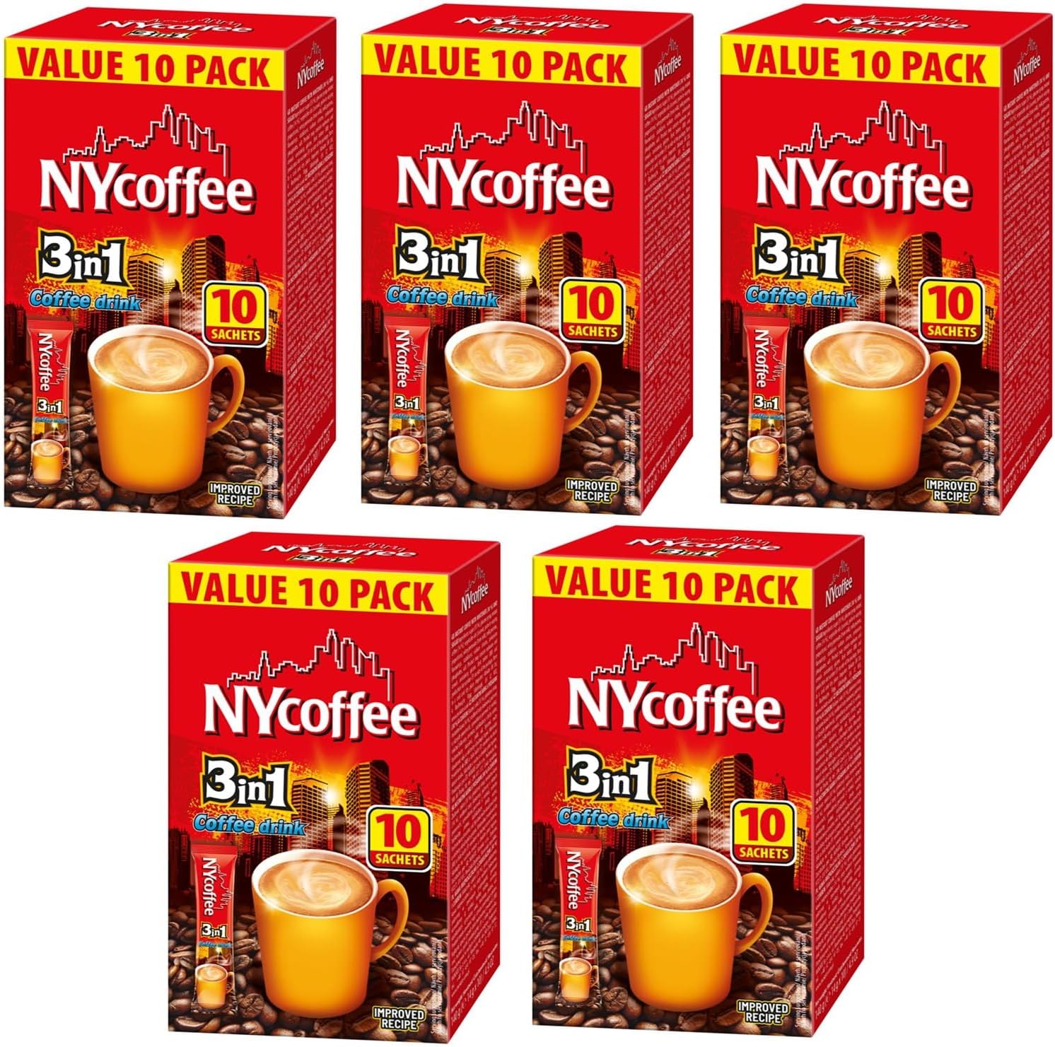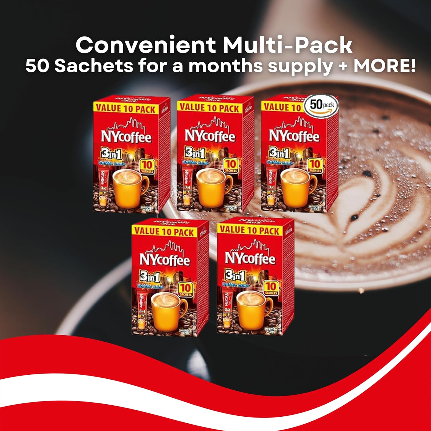 50 x NY Coffee 3 in 1 Sachets White Coffee Sachet with Sugar - 5 Boxes x 10 Instant
