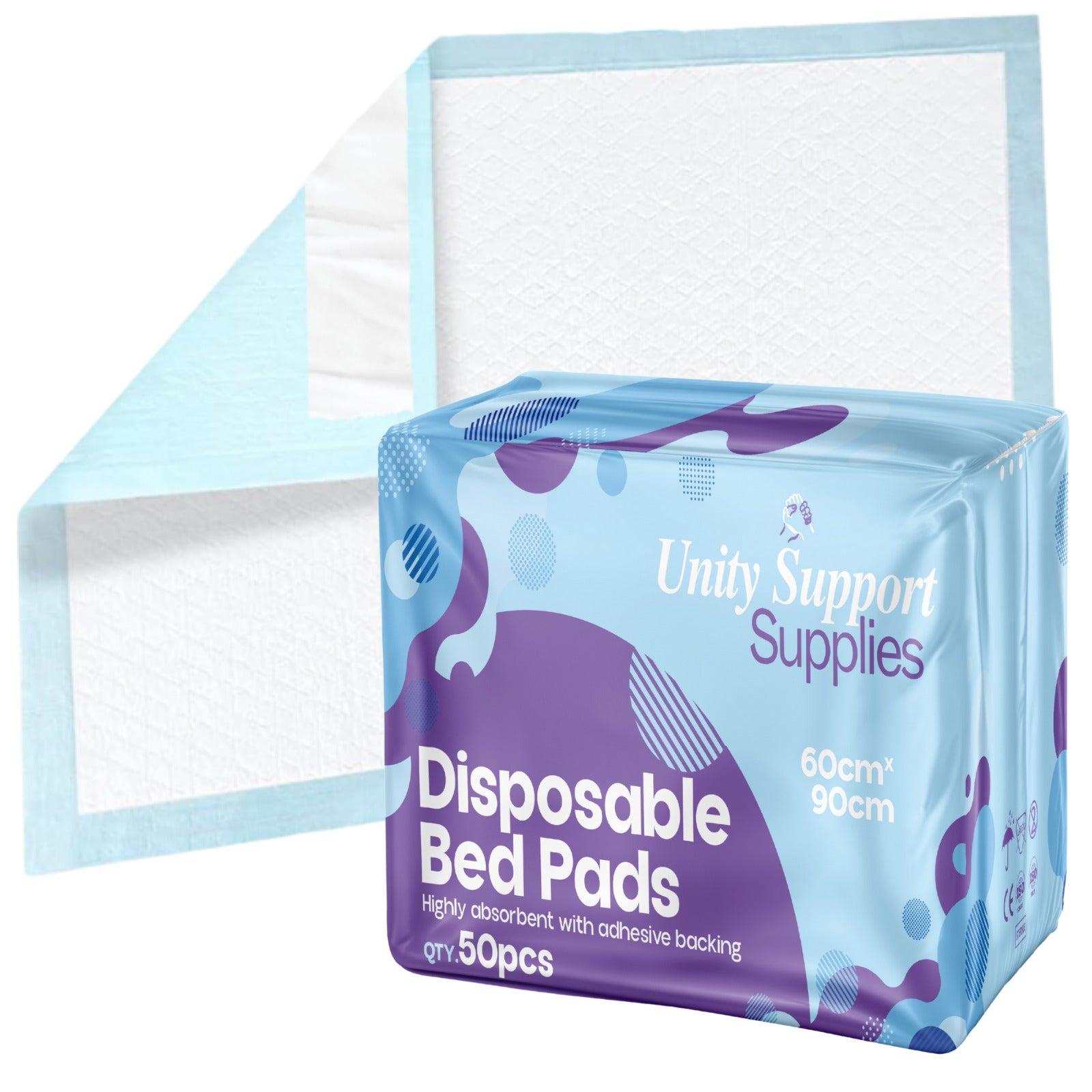 50 x Unity Support Supplies Premium Disposable Incontinence Bed Pads 60cmx90cm - Highly Absorbent, Rapid Lock Core, Full Length Adhesive Strips, Waterproof, Sensitive Underpads - Adults & Kids