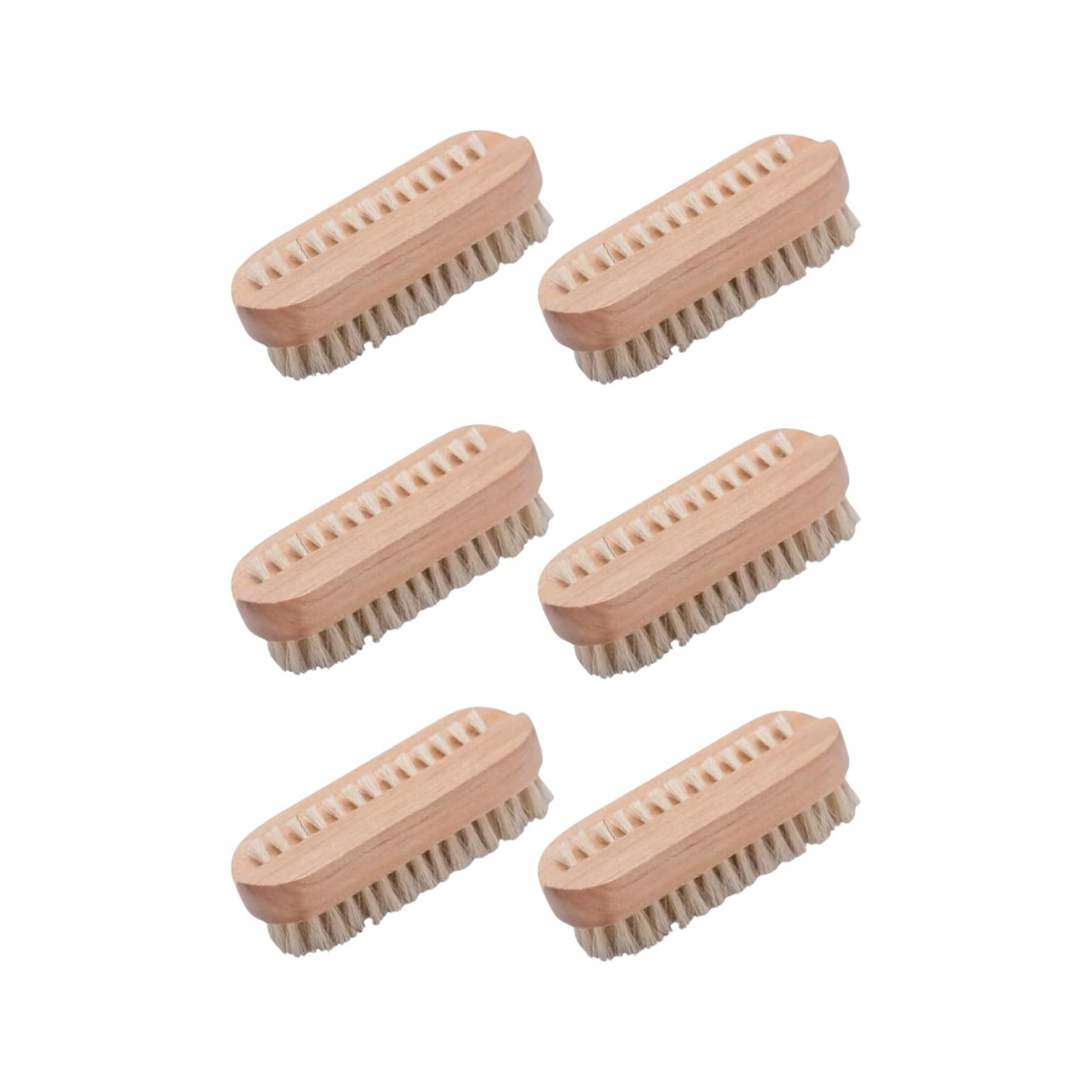 6 x Wooden Nail Brushes, Hygienic Double Sided Hand And Cleaning Brush, Scrubbing To Clean Under Dirt Grime Grease, Firm Strong Bristles, For Use On Fingernails Toenails