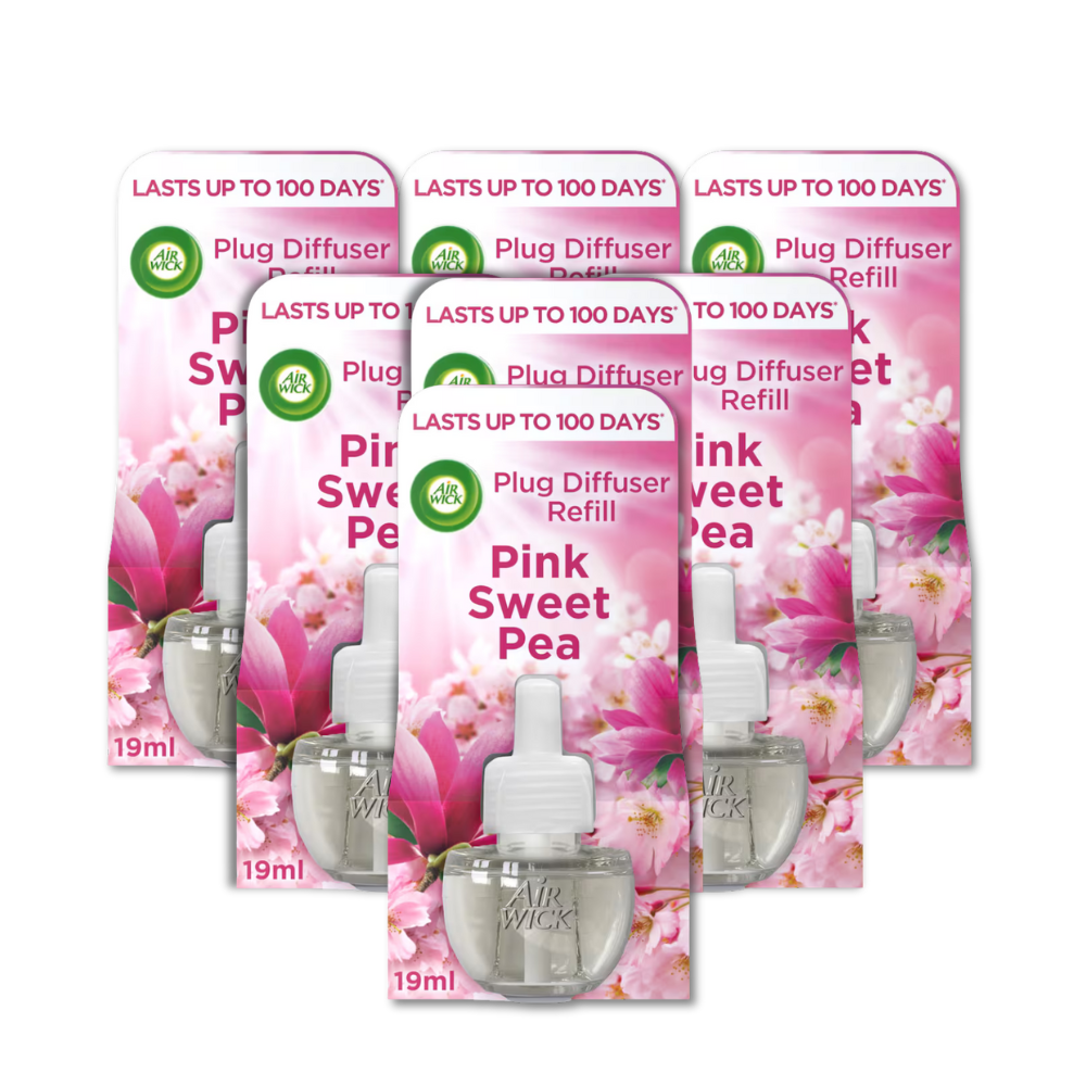 Air Wick Plug in Diffuser Refill, Pink Sweet Pea, Pack 6 x 19ml, Long Lasting Fragrance, Lasts up to 600 days, Plug in Air freshener