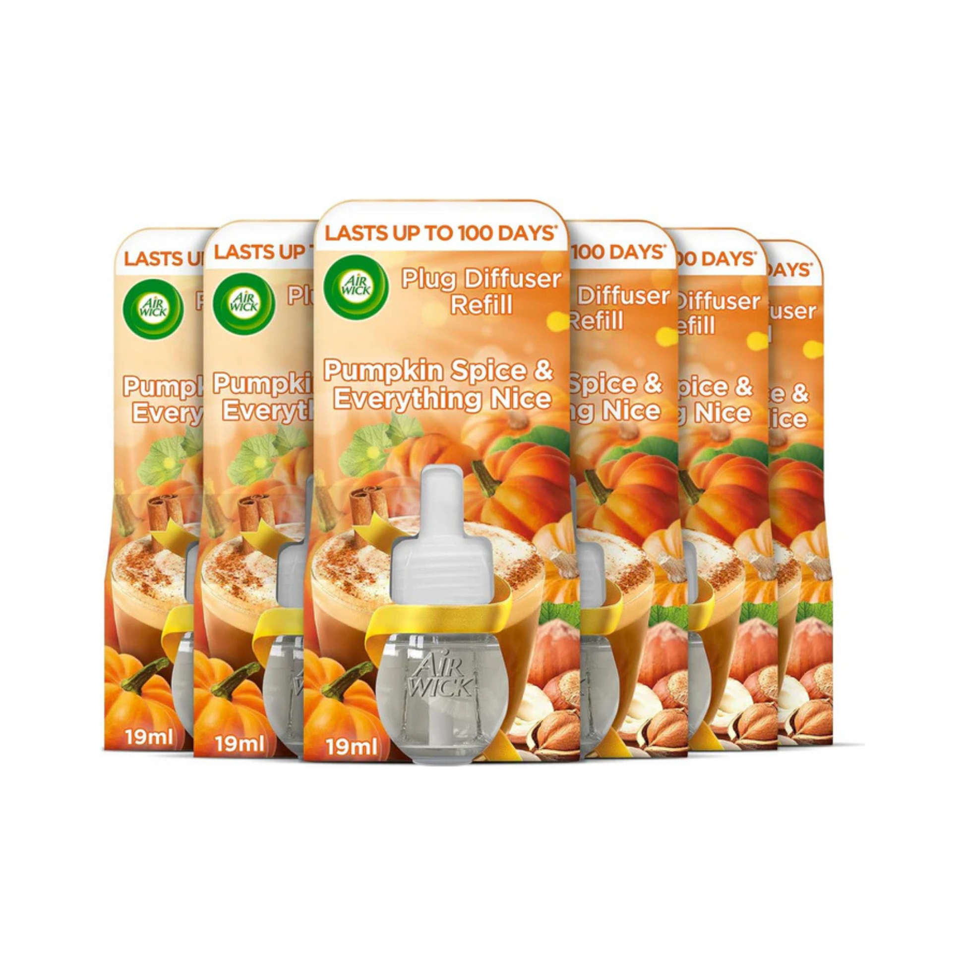 Air Wick Plug in Diffuser Refill, Pumpkin Spice & Everything Nice - 6 Pack