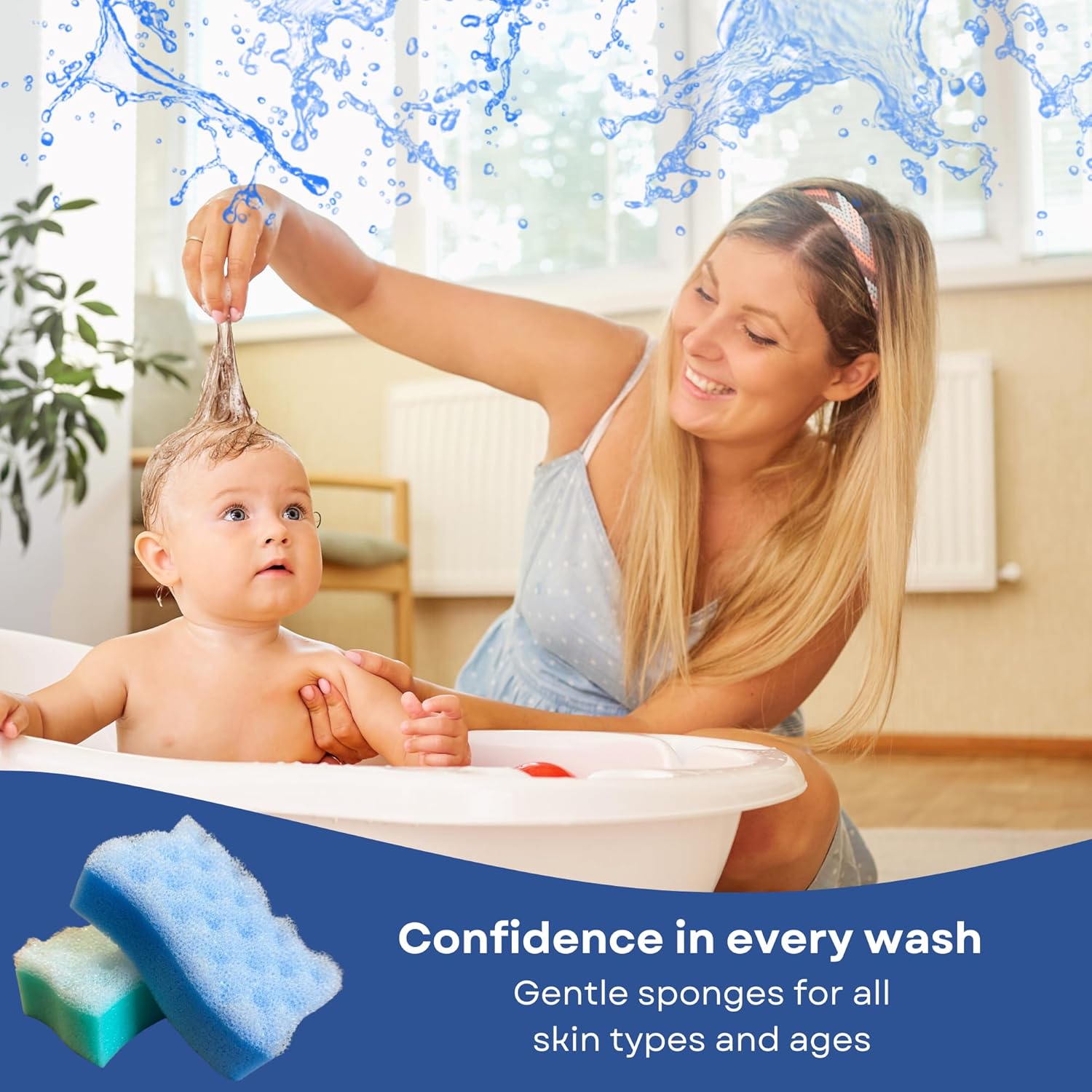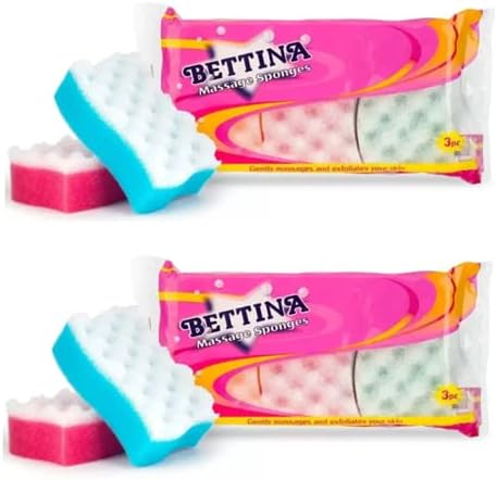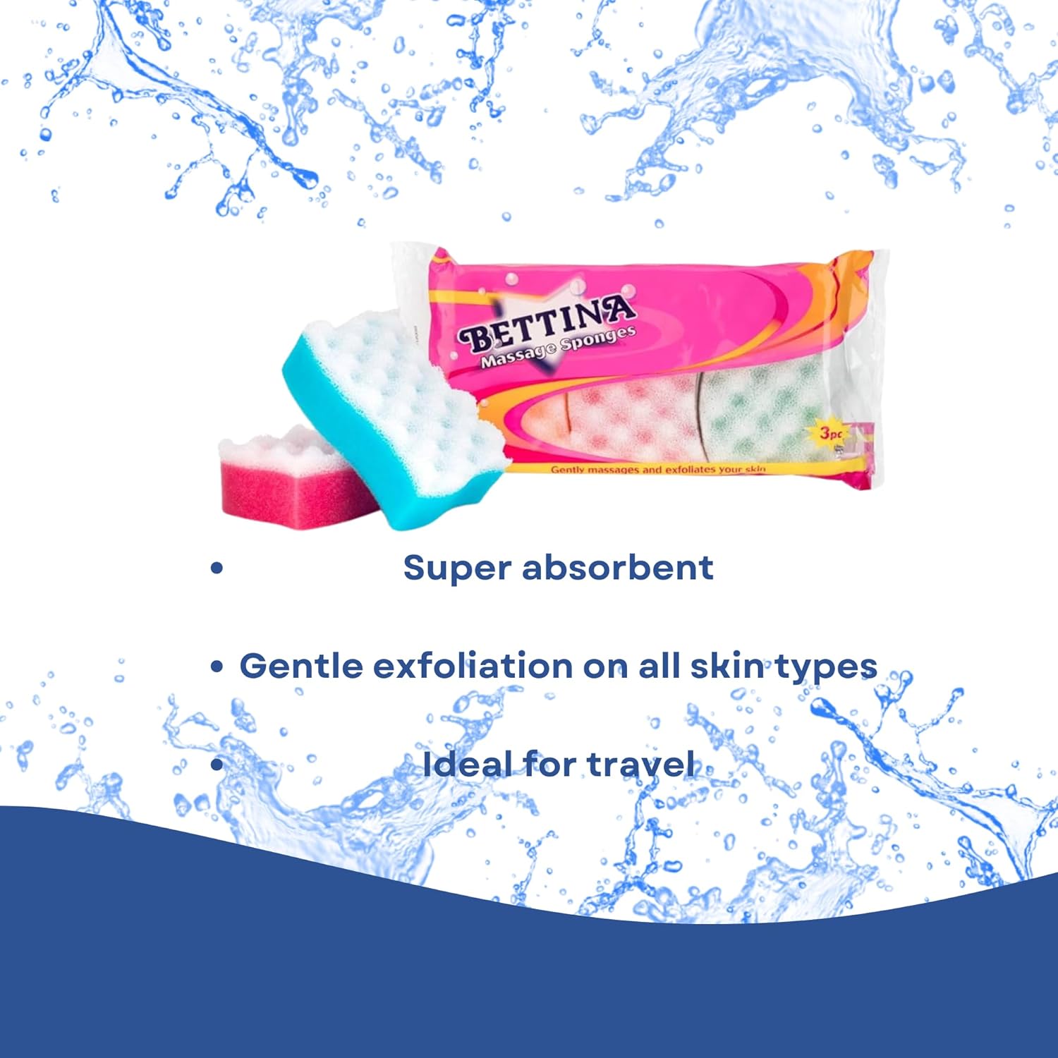 6 x Exfoliating Bath Sponge for Adults and Kids, 2 Packs of 3 Massage Sponges for Men and Women, Mixed Colours