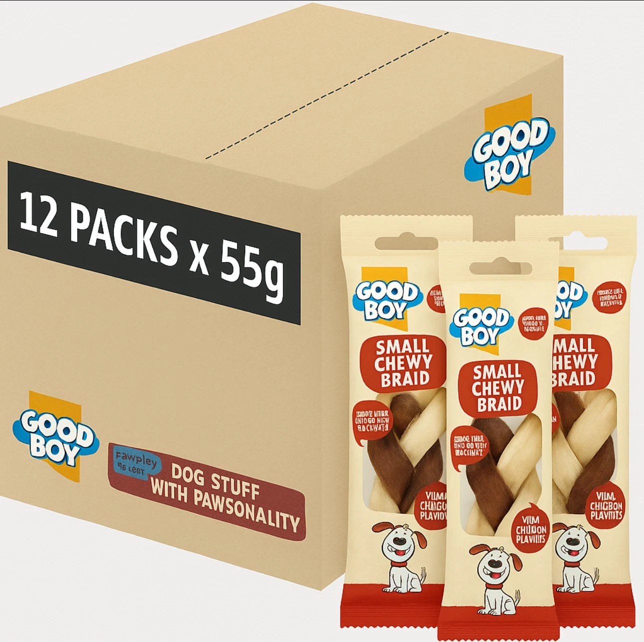 Good Boy - Small Chewy Braids - Dog Chews - Made With Chicken and Chicken Flavouring - 55 Grams ℮ - With Probiotics To Aid Digestion - Case of 12